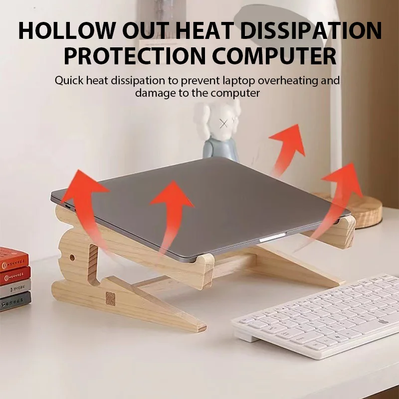 Support Ergonomique en Bois pour Ordinateur Portable – Design Incliné, Pliable avec Rangement Intégré